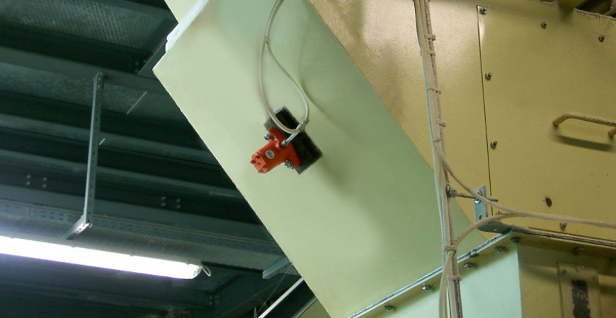 P系列振動器需安裝在一塊安裝板上(不提供),安裝板焊接在倉壁上。建議安裝一條安全鏈,防止在安裝或維護時掉落。